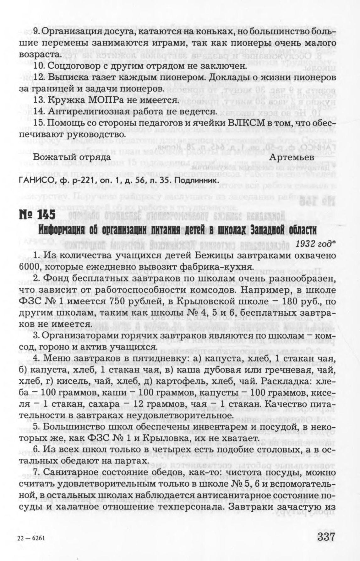 Информация об организации питания детей в школах Западной области. 1932 год // ГАНИСО, Ф. Р-50, Оп. 1, Д. 645, Л. 28. Копия.