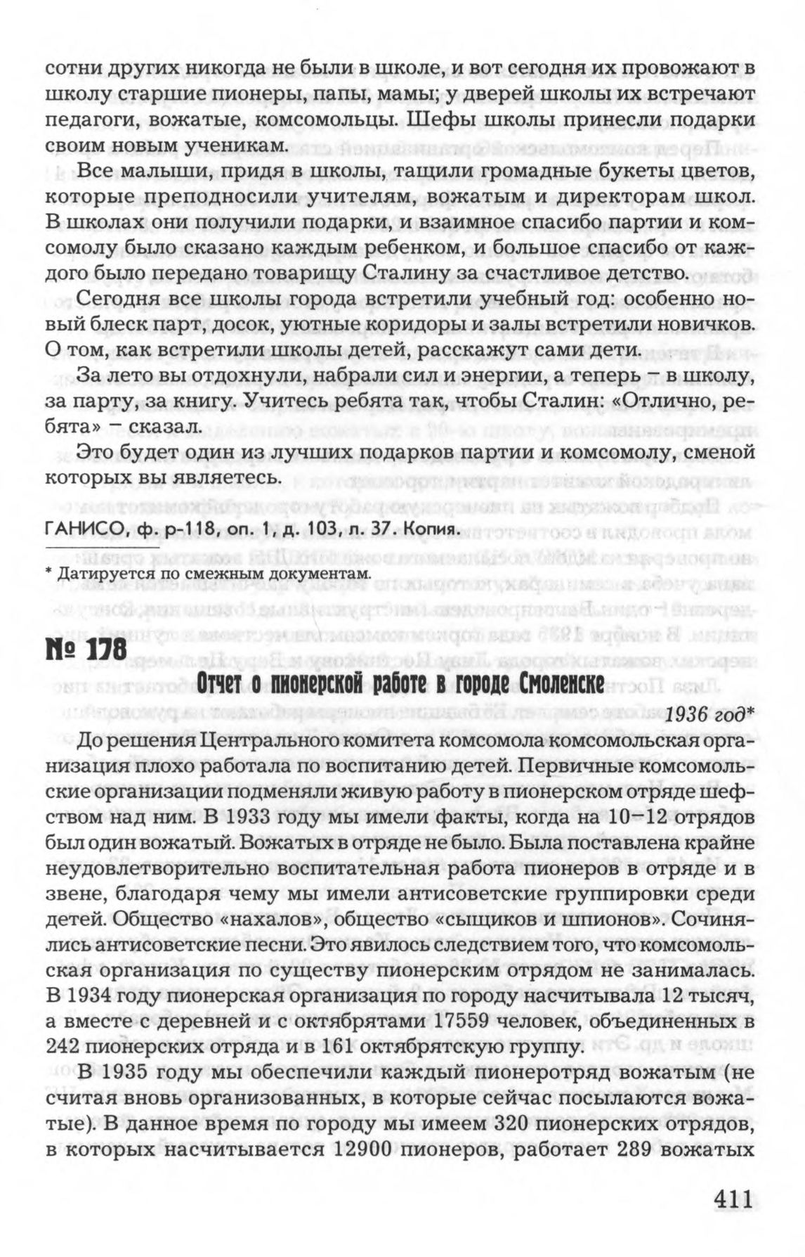 Отчет о пионерской работе в городе Смоленске. 1936 год // ГАНИСО, Ф. Р-221, Оп. 1, Д. 346, Л. 12-15. Копия.