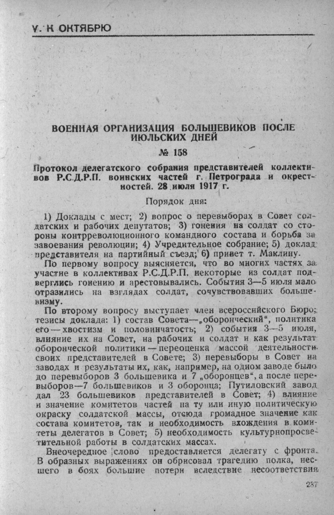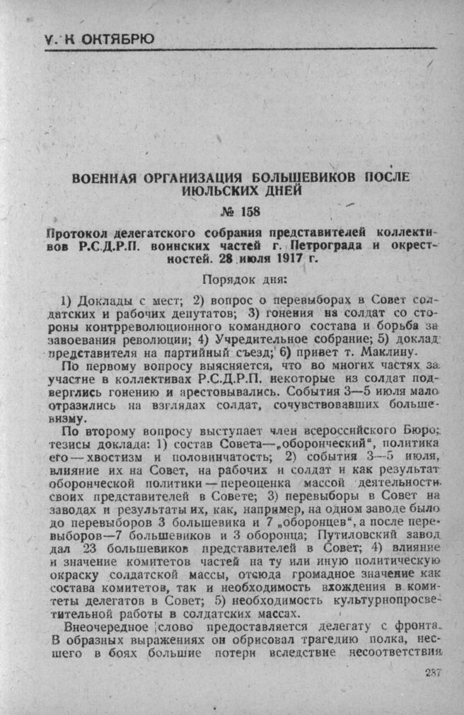 Протокол делегатского собрания представителей коллективов Р.С.Д.Р.П. воинских частей г. Петрограда и окрестностей. 28 июля 1917 г.