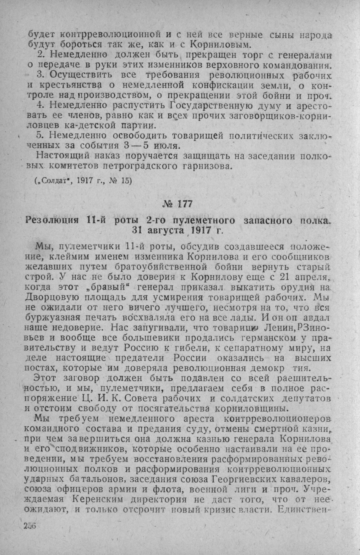 Резолюция 11-й роты 2-го пулеметного запасного полка. 31 августа 1917 г. // Солдат, 1917 г., № 16.