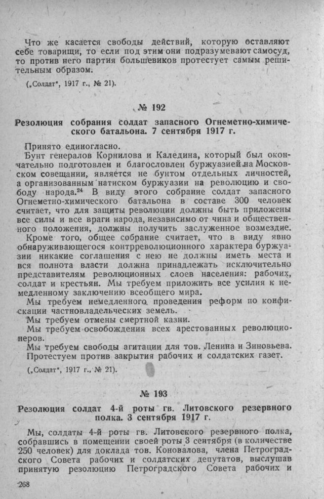 Главная Большевизация Петроградского гарнизона в 1917 году Документы Резолюция собрания солдат запасного Огнеметно-химического батальона...