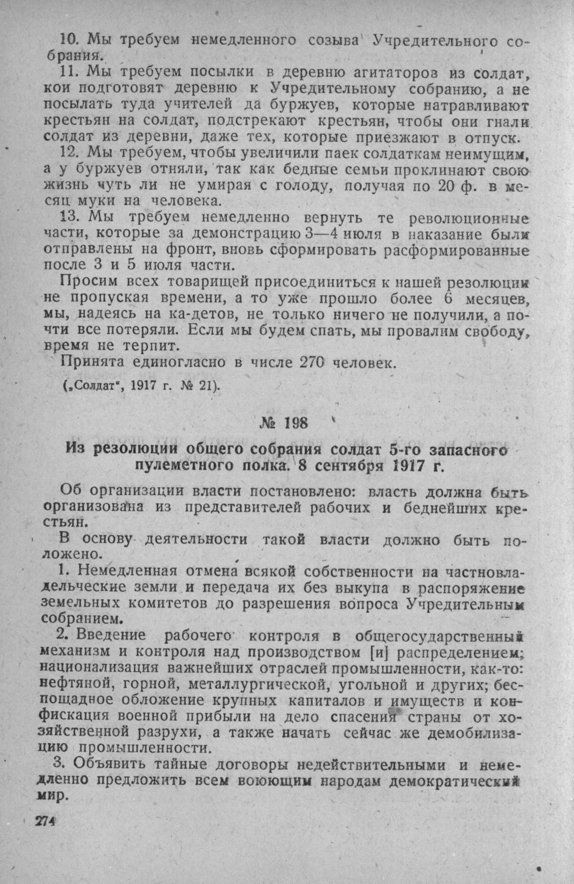 Из резолюции общего собрания солдат 5-го запасного пулеметного полка. 8 сентября 1917 г. // Солдат, 1917 г., № 28.