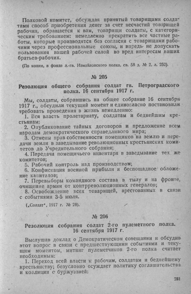Резолюция общего собрания солдат гв. Петроградского полка. 16 сентября 1917 г. // Солдат, 1917 г., № 28.