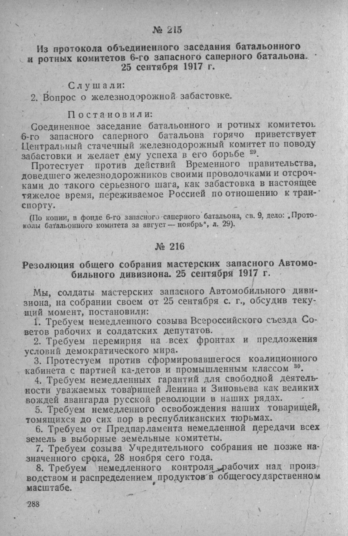 Резолюция общего собрания мастерских запасного Автомобильного дивизиона. 25 сентября 1917 г. // Солдат, 1917 г., № 38.