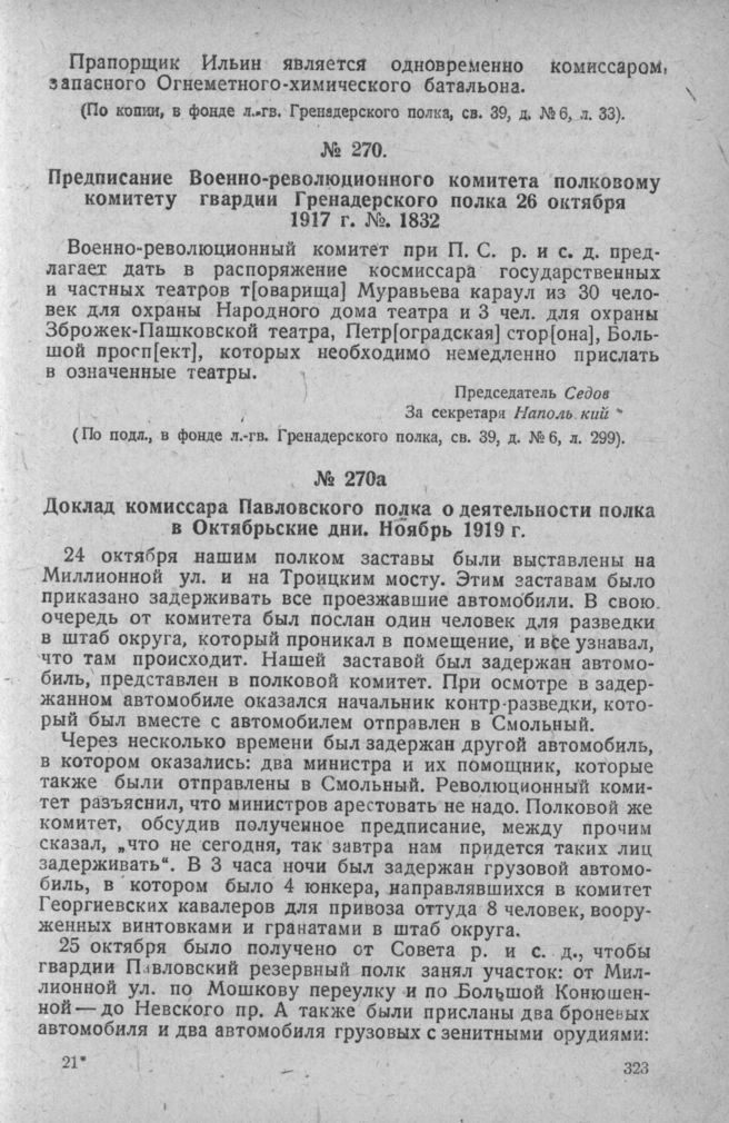 Предписание Военно-революционного комитета полковому комитету гвардии Гренадерского полка 26 октября 1917 г. №. 1832 // Фонд л.-гв. Гренадерского полка, св. 39, д. № 6, л. 299.