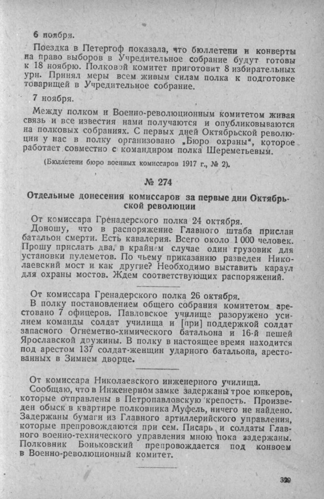 Отдельные донесения комиссаров за первые дни Октябрьской революции // Бюллетени бюро военных комиссаров, 1918 г., № 3.