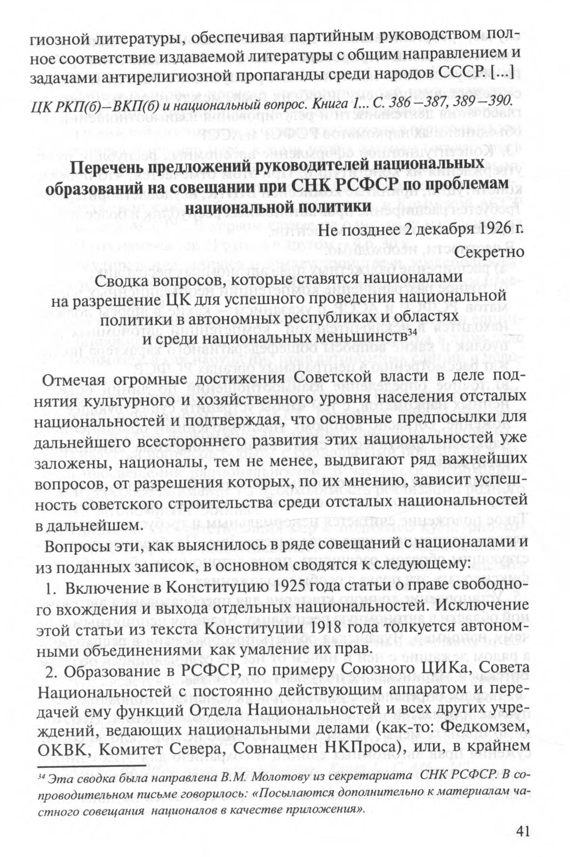 Перечень предложений руководителей национальных образований на совещании при СНК РСФСР по проблемам национальной политики. Не позднее 2 декабря 1926 г. // ЦКРКП(б)-ВКП(б) и национальный вопрос. Книга 1...С. 446- 447.