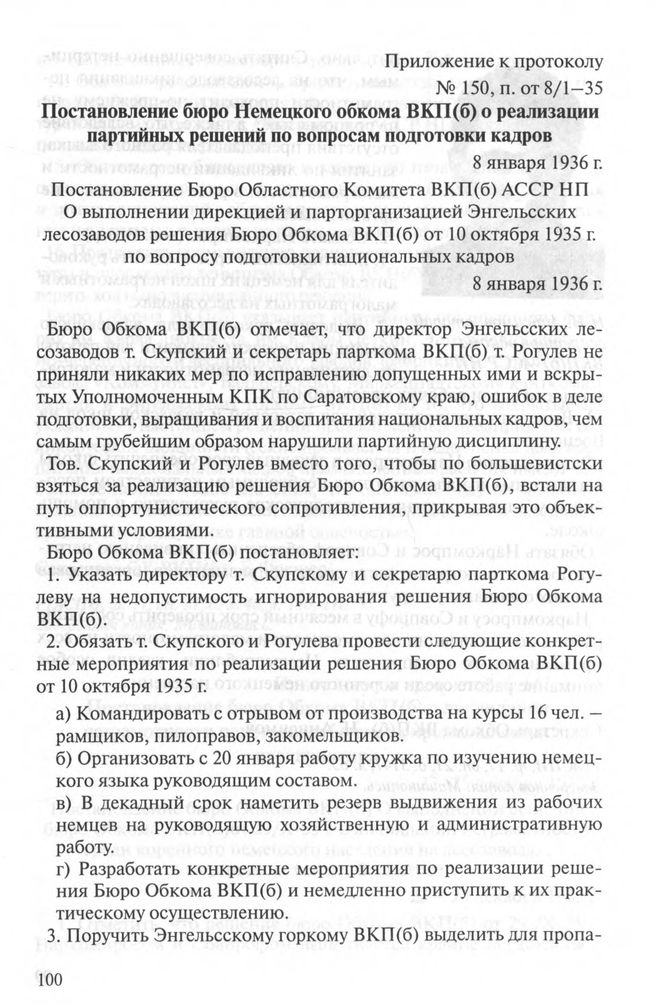 Постановление бюро Немецкого обкома ВКП(б) о реализации партийных решений по вопросам подготовки кадров. 8 января 1936 г. // РГАСПИ. Ф. 17. Оп. 21. Д. 3142. Л. 45 - 45об. Заверенная копия. Машинопись.