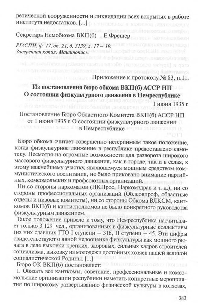 Из постановления бюро обкома ВКП(б) АССР НП о состоянии физкультурного движения в Немреспублике. 1 июня 1935 г. // РГАСПИ. Ф. 17. Оп. 21. Д. 3139. Л. 92-94. Заверенная копия. Машинопись.