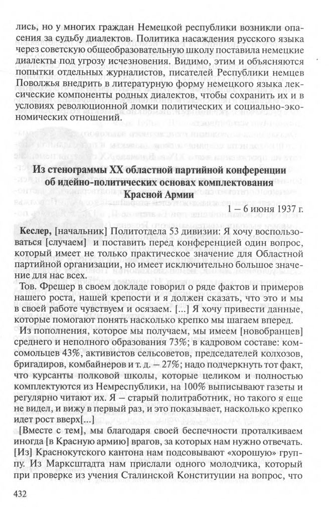Из стенограммы XX областной партийной конференции об идейно-политических основах комплектования Красной Армии. 1-6 июня 1937 г. // РГАСПИ. Ф. 17. Оп. 21. Д. 3098. Л. 32, 35. Копия. Машинопись.