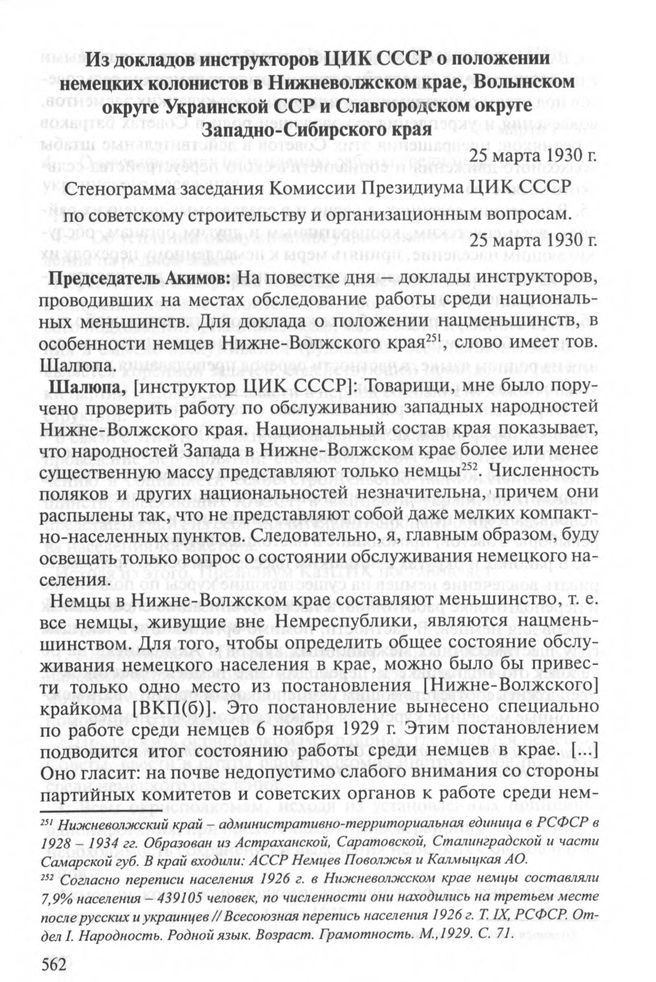 Из докладов инструкторов ЦИК СССР о положении немецких колонистов в Нижневолжском крае, Волынском округе Украинской ССР и Славгородском округе Западно-Сибирского края. 25 марта 1930 г. // ГА РФ. Ф. 3316. Оп. 23. Д. 1339. Л. 42об-77. Подлинник, правленый докладчиками, с автографом С. Шишканова. Машинопись.