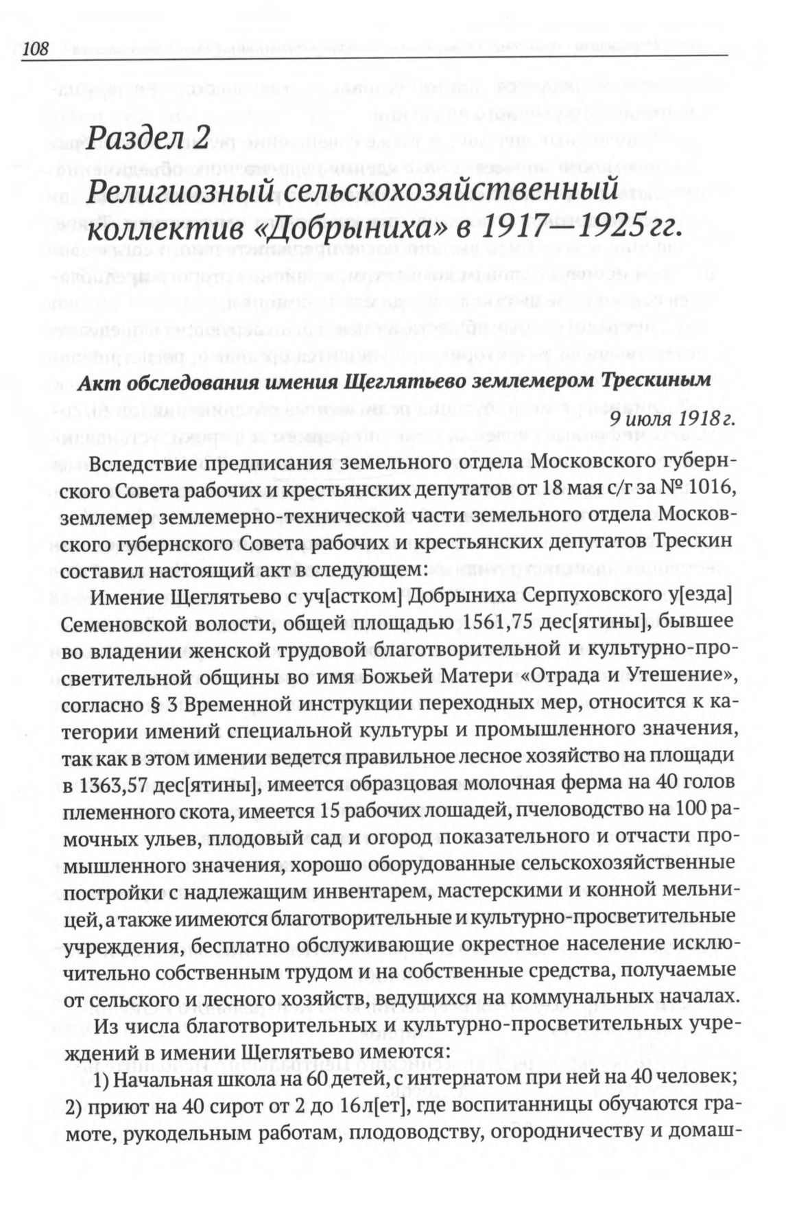 Акт обследования имения Щеглятьево землемером Трескиным. 9 июля 1918 г. // ЦГАМО. Ф. 4997. Oп. 1. Д. 105. Л. 38—38об. Копия. Заверенная рукопись.