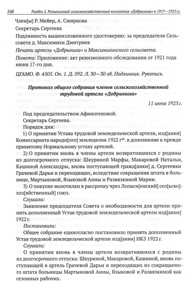 Религиозная сельскохозяйственная артель «Добрыниха». 1917—1934 гг.: Сборник документов и материалов. — М., 2012.