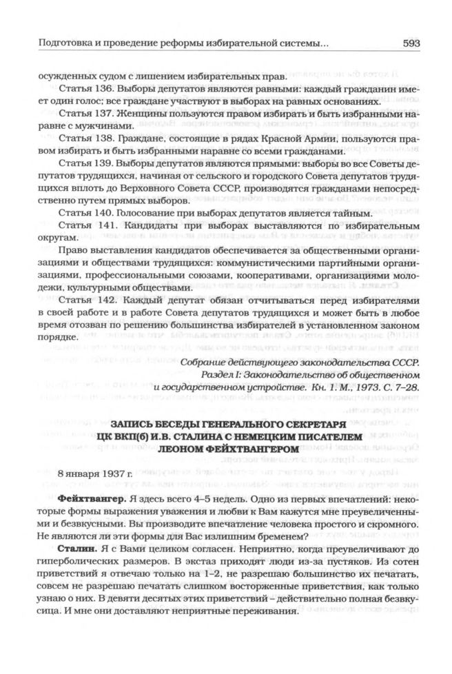 Запись беседы Генерального секретаря ЦК ВКП(б) И.В. Сталина с немецким писателем Леоном Фейхтвангером. 8 января 1937 г. // Большая цензура. Писатели и журналисты, в Стране Советов. 1917-1956. М., 2005.
