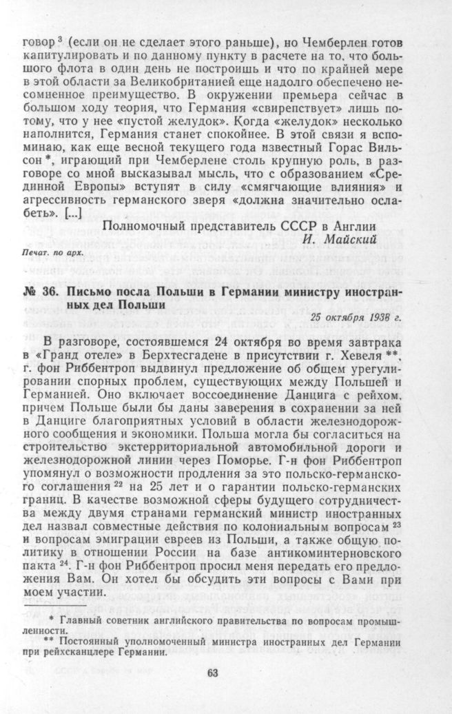 Письмо посла Польши в Германии министру иностранных дел Польши. 25 октября 1938 г. // Печат. в переводе с английского по сборн.: «Official Documents concerning Polish-German and Polish-Soviet Relations. 1933—1939». London, 1939, p. 47—48.