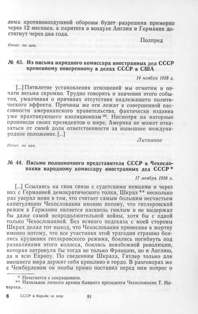 Из письма народного комиссара иностранных дел СССР временному поверенному в делах СССР в США. 14 ноября 1938 г. // Печат. по арх.
