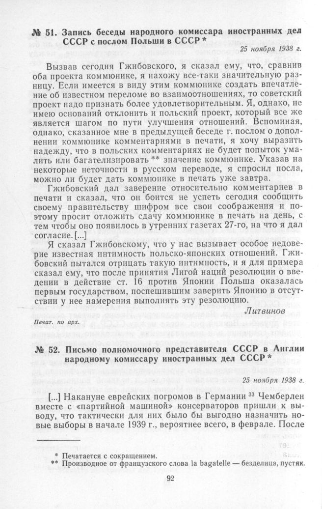 Письмо полномочного представителя СССР в Англии народному комиссару иностранных дел СССР. 25 ноября 1938 г. // Печат. по арх.