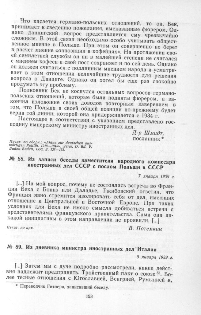 Из дневника министра иностранных дел Италии. 8 января 1939 г. // Печат. по кн.: G. Ciano. Diario, vol. I, Roma, 1946, p. 18-19.
