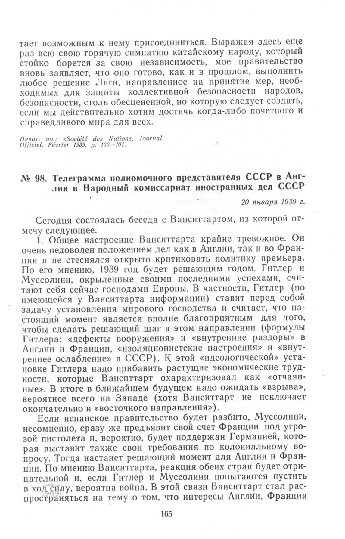 Телеграмма полномочного представителя СССР в Англии в Народный комиссариат иностранных дел СССР. 20 января 1939 г. // Печат. по арх.