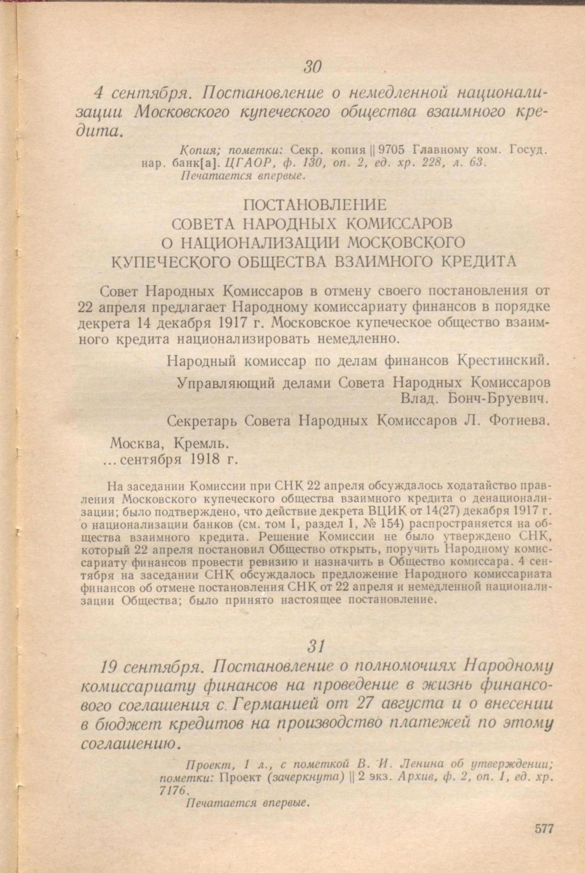 Главная Серия «Экономическая история. Документы, исследования, переводы» Декреты советской власти в 18 т. Декреты Советской власти. Т. III. 11 июля – 9 ноября 1918 г. Документы 19 сентября. Постановление о полномочиях Народному комиссариату фин...