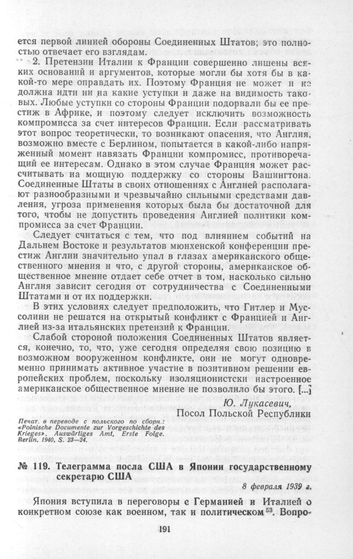Телеграмма посла США в Японии государственному секретарю США. 8 февраля 1939 г. // Печат. по сборн.: «Papers Relating to the Foreign Relations of the United States, Japan. 1931—1941», vol. II. Washington, 1943, p. 161—162.