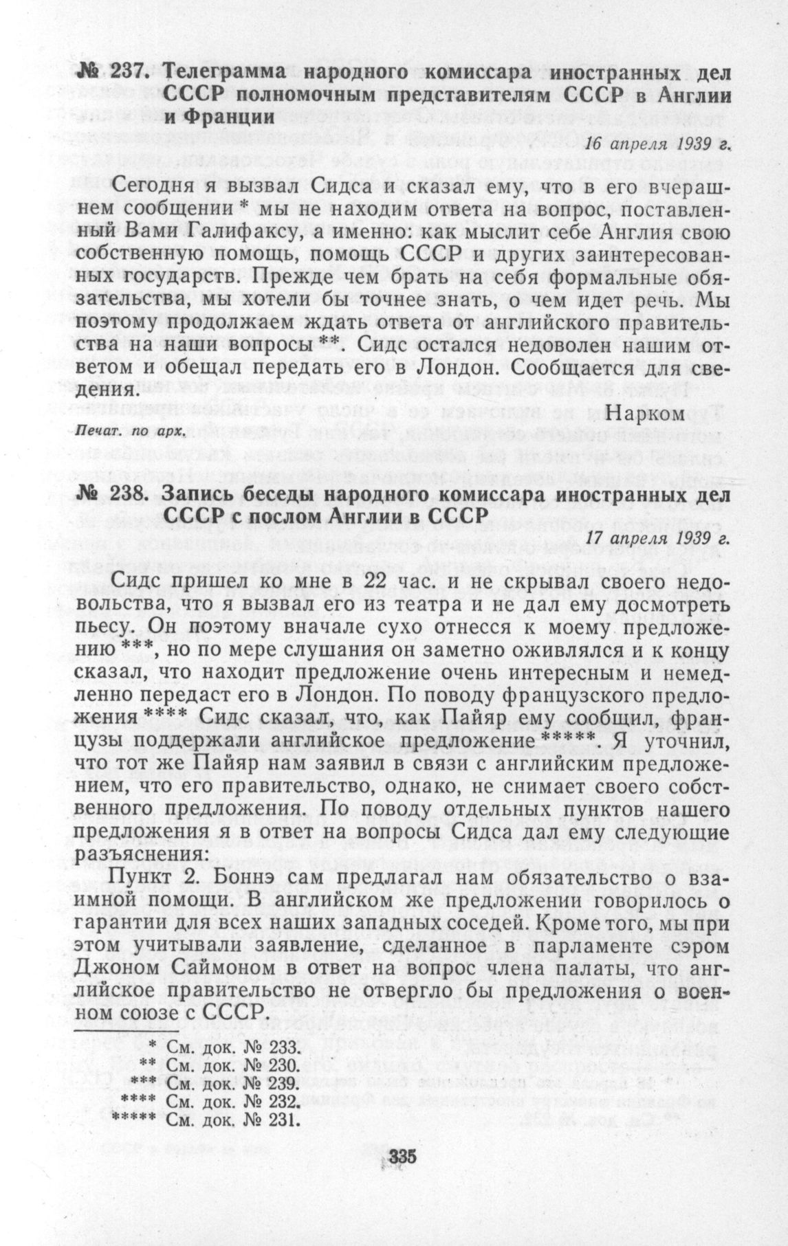 Запись беседы народного комиссара иностранных дел СССР с послом Англии в СССР. 17 апреля 1939 г. // Печат. по арх.