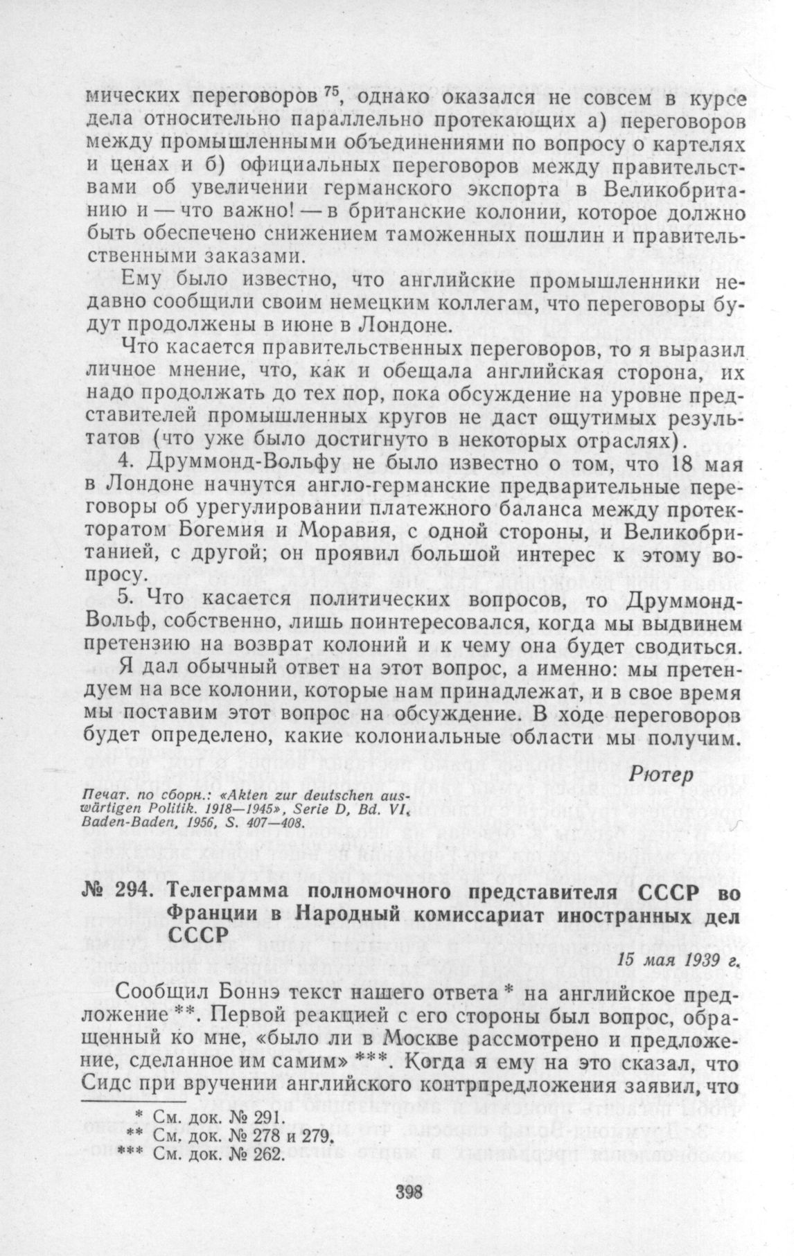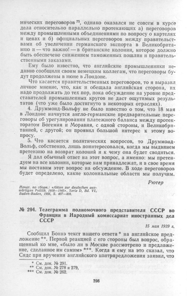 Телеграмма полномочного представителя СССР во Франции в Народный комиссариат иностранных дел СССР. 15 мая 1939 г. // Печат. по арх.