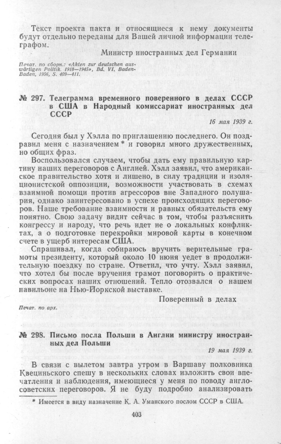 Письмо посла Польши в Англии министру иностранных дел Польши. 19 мая 1939 г. // Печат. по арх.