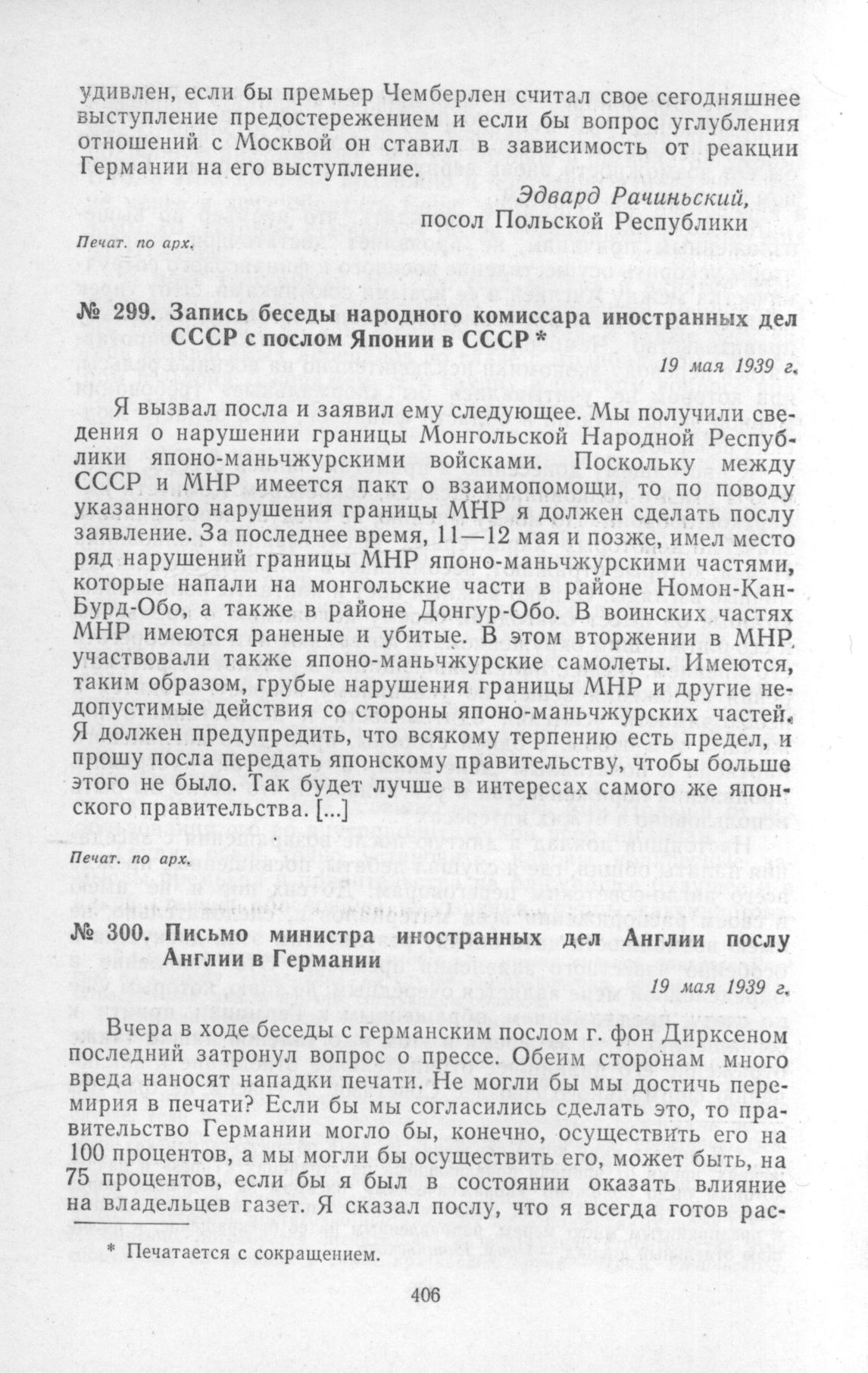 Письмо министра иностранных дел Англии послу Англии в Германии. 19 мая 1939 г. // Печат. по сборн.: «Documents on British Foreign Policy. 1919-1939». Third series, vol. V. London, 1952, p. 603.