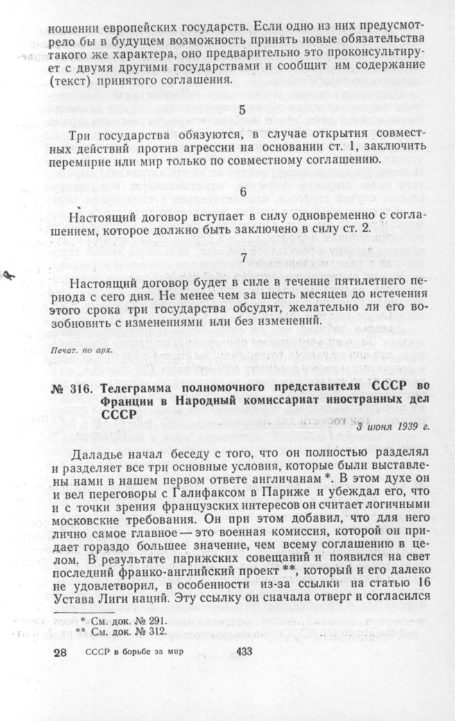 Телеграмма полномочного представителя СССР во Франции в Народный комиссариат иностранных дел СССР. 3 июня 1939 г. // Печат. по арх.