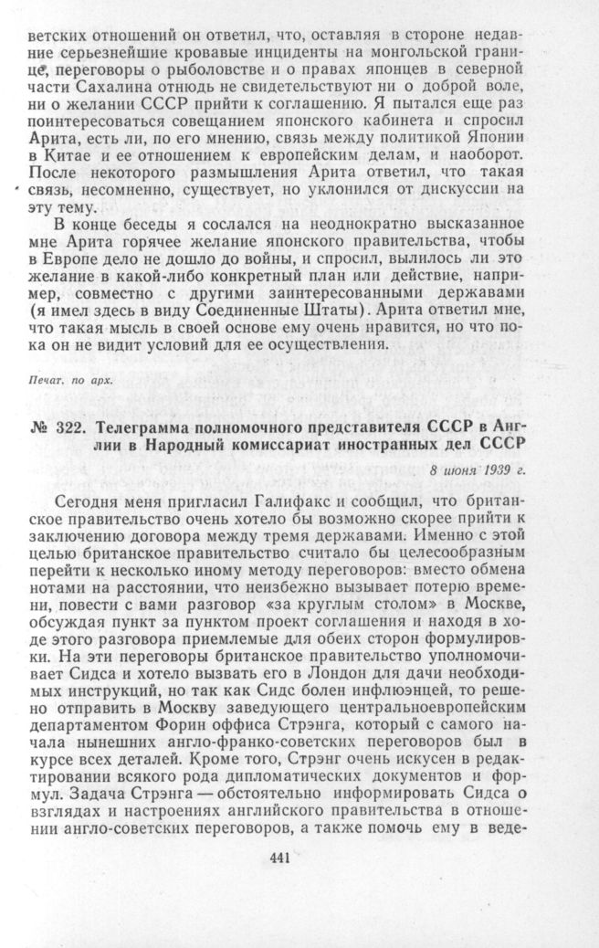 Телеграмма полномочного представителя СССР в Англии в Народный комиссариат иностранных дел СССР. 8 июня 1939 г. // Печат. по арх.