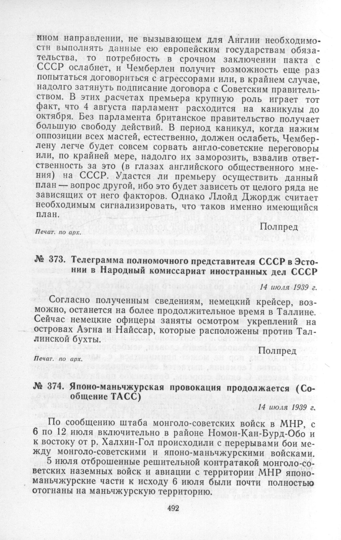 Японо-маньчжурская провокация продолжается (Сообщение ТАСС). 14 июля 1939 г. // Печат. по газ. «Известия», № 161 (6931), 14 июля 1939 г.