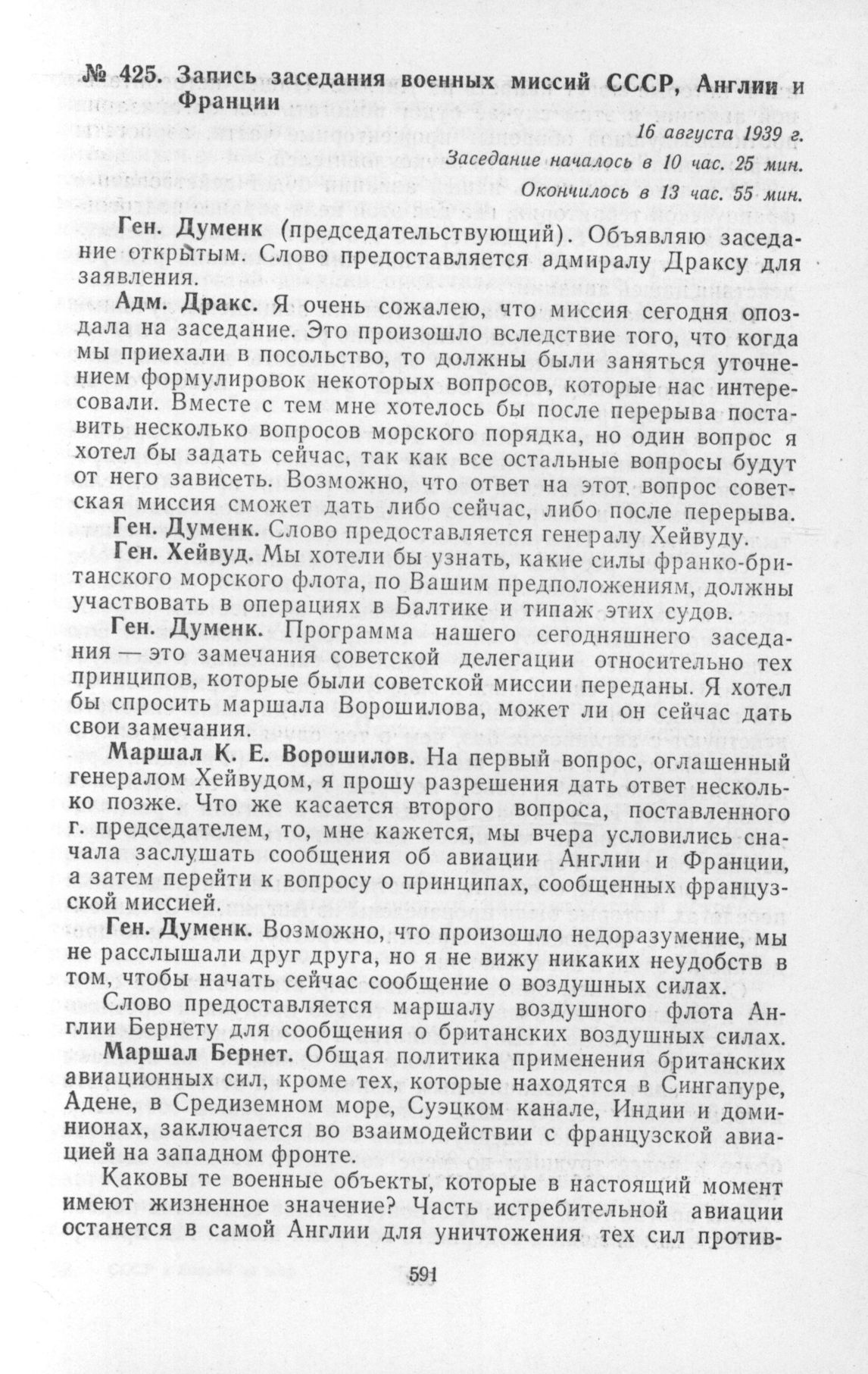 Запись заседания военных миссий СССР, Англии и Франции. 16 августа ...
