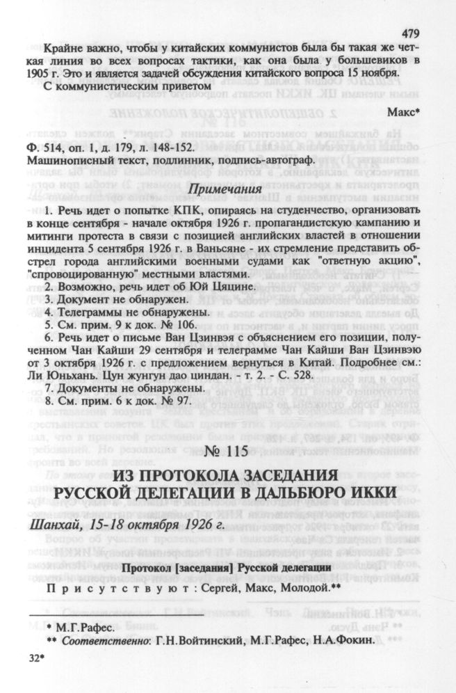 Из протокола заседания Русской делегации в Дальбюро ИККИ (15-18 октября 1926 г.) // РЦХИДНИ, ф. 495, оп. 154, д. 267, л. 126. Машинописный текст, копия, без подписи.