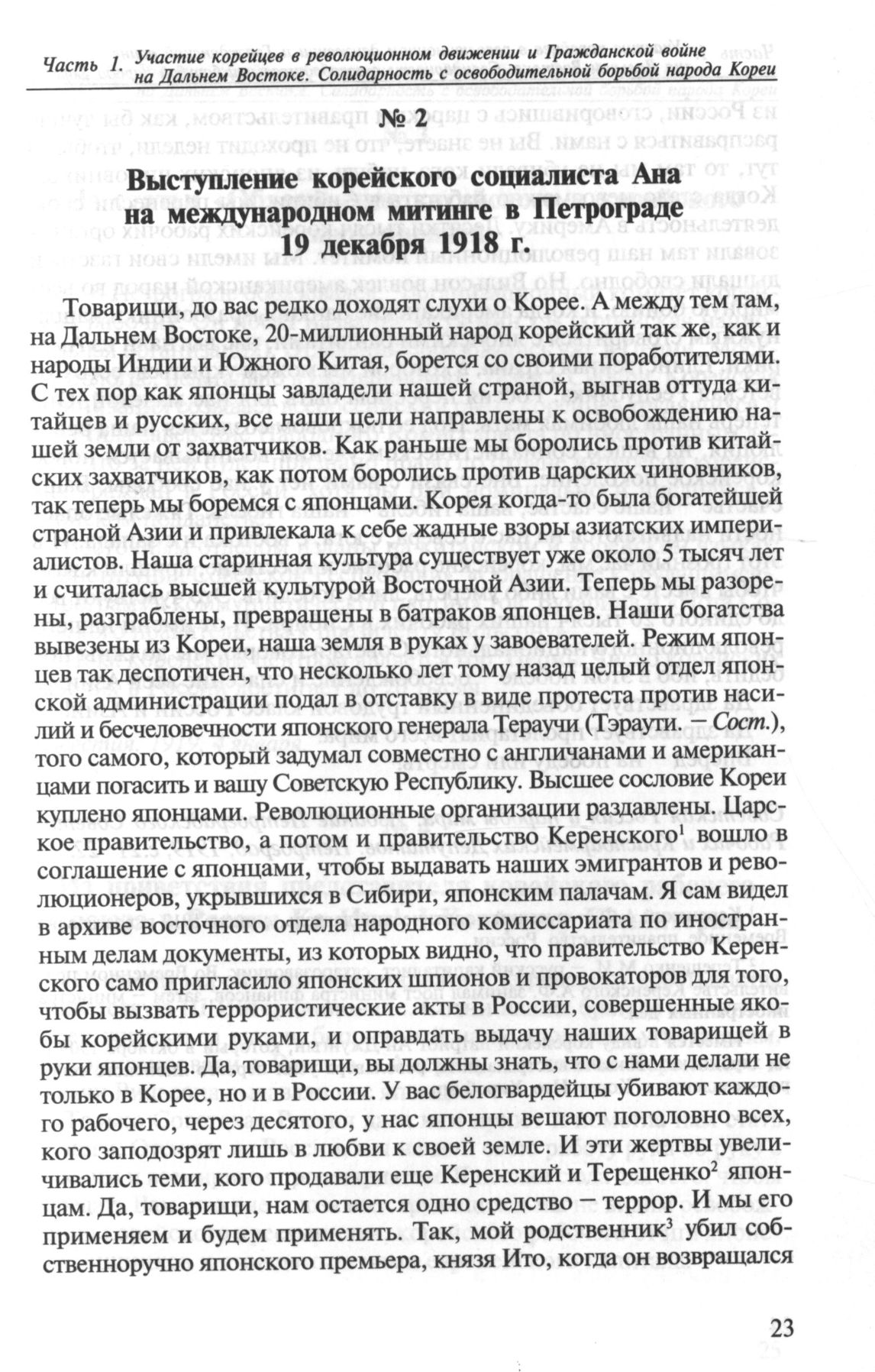 Выступление корейского социалиста Ана на международном митинге в Петрограде. 19 декабря 1918 г. // Советская Россия и народы мира. Издание Петроградского Совета Рабочих и Красноармейских Депутатов. Петроград, 1919, с.21-22.