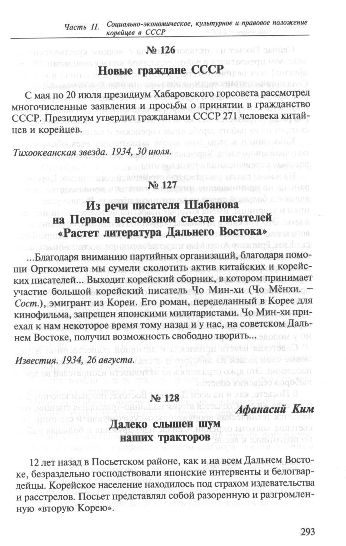 Корейцы в СССР. Материалы советской печати 1918-1937 гг. — М.: Институт востоковедения РАН, 2004.