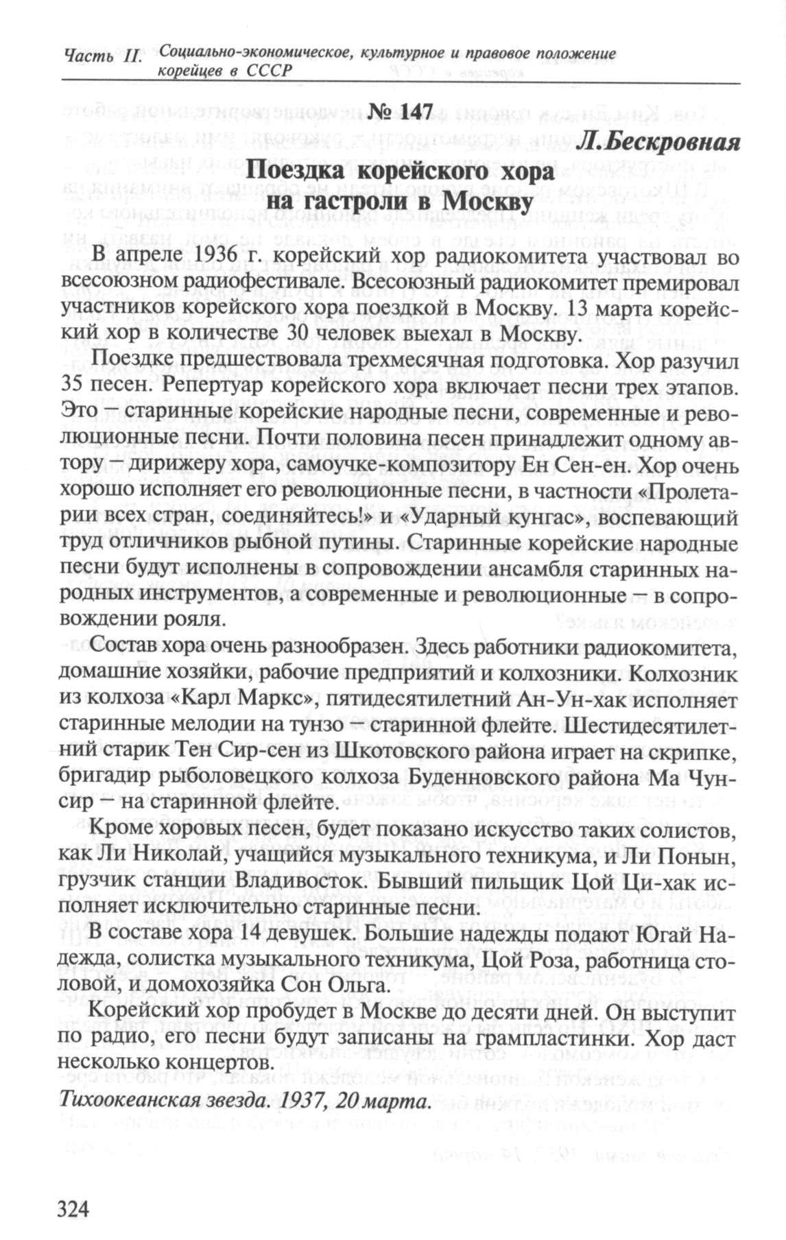 Л. Бескровная. Поездка корейского хора на гастроли в Москву // Тихоокеанская звезда. 1937, 20 марта.