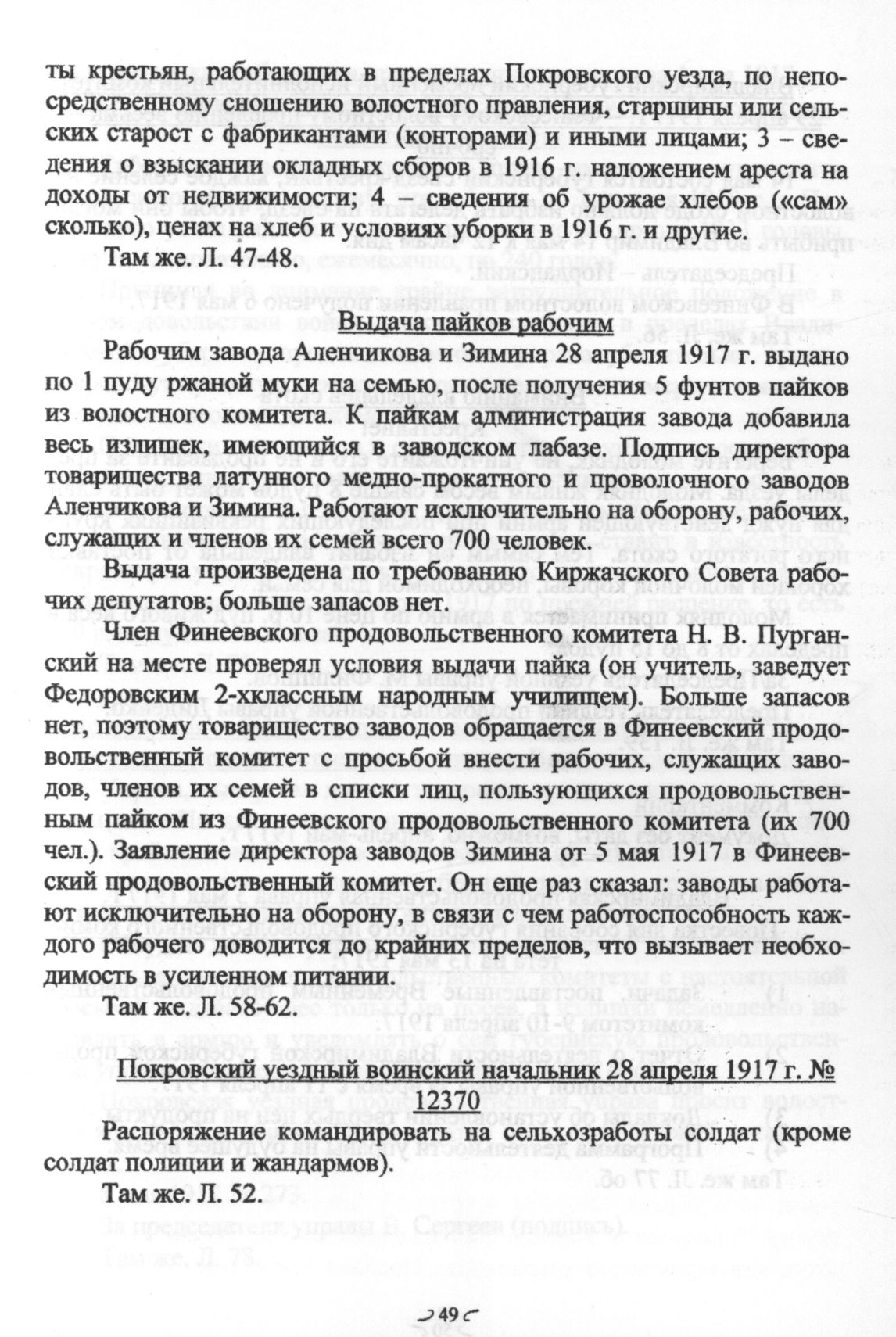 Покровский уездный воинский начальник 28 апреля 1917 г. № 12370 // ГАВО. Ф. 1086. Oп. 1. Д. 4. Л. 52.