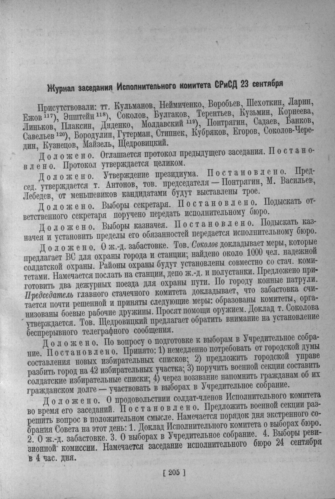 Журнал заседания Исполнительного комитета СРиСД 23 сентября