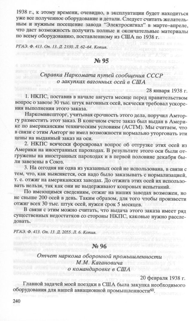 Справка Наркомата путей сообщения СССР о закупках вагонных осей в США. 28 января 1938 г. // РГАЭ. Ф. 413. Оп. 13. Д. 2055. Л. 6. Копия.