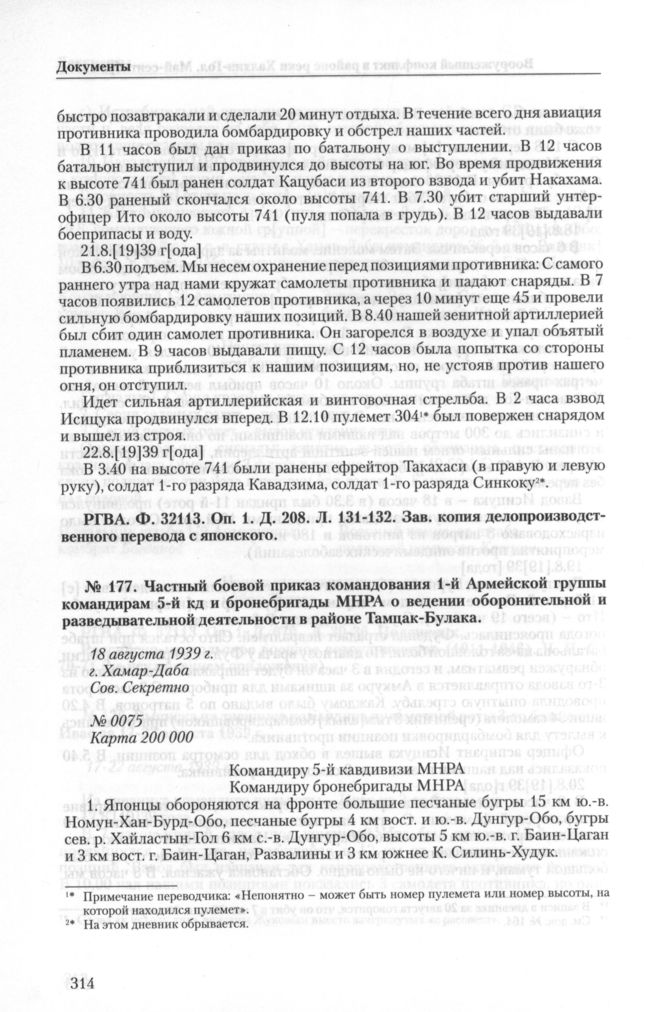 Частный боевой приказ командования 1-й Армейской группы командирам 5-й кд и бронебригады МНРА о ведении оборонительной и разведывательной деятельности в районе Тамцак-Булака. 18 августа 1939 г. // РГВА. Ф. 32113. Oп. 1. Д. 670. Л. 253. Подлинник. Российско-монгольское военное сотрудничество (1911-1946). Ч. II. С. 71-72.