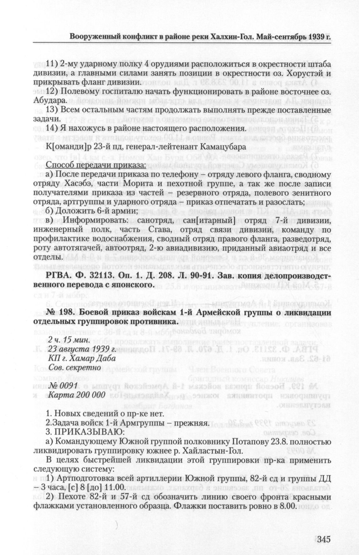 Боевой приказ войскам 1-й Армейской группы о ликвидации отдельных группировок противника. 23 августа 1939 г. // РГВА. Ф. 32113. Oп. 1. Д. 670. Л. 69-71. Подлинник. Рукопись; Д. 3. Л. 61-62. Зав. копия.