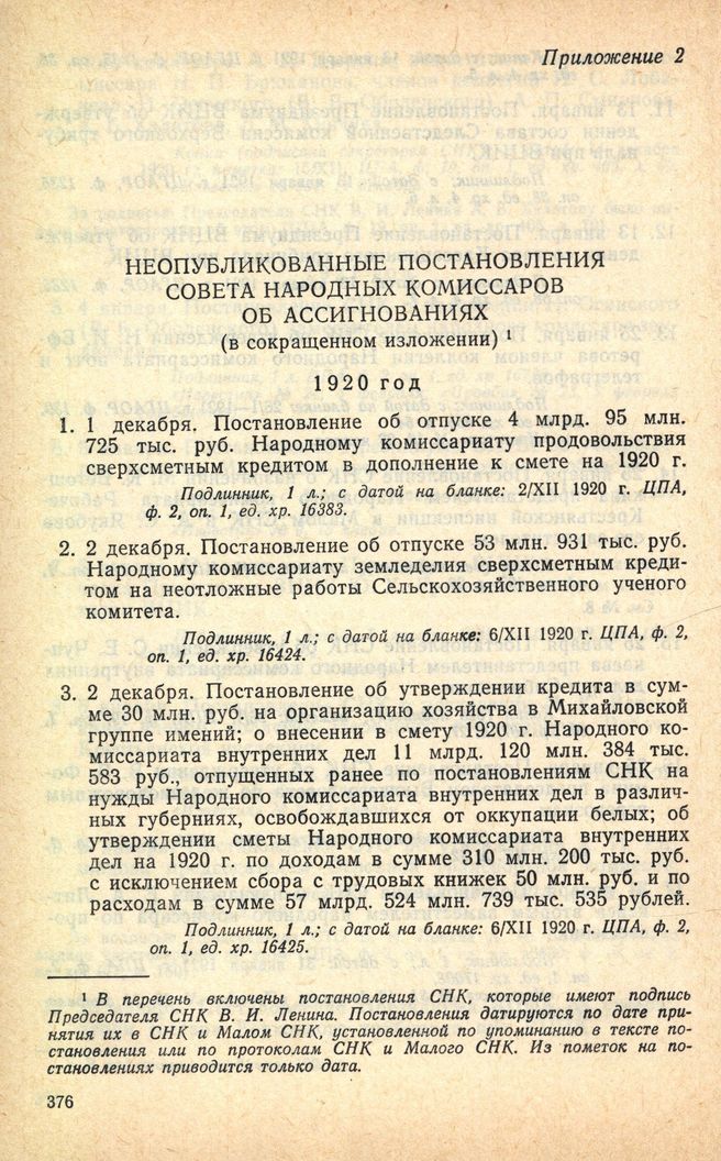 1 декабря. Постановление об отпуске 4 млрд. 95 млн. 725 тыс. руб. Народному комиссариату продовольствия сверхсметным кредитом в дополнение к смете на 1920 г.