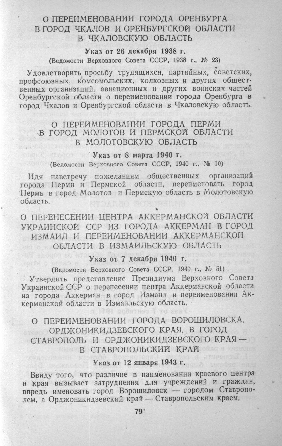 О переименовании города Ворошиловска, Орджоникидзевского края, в город Ставрополь и Орджоникидзевского края - в Ставропольский край (Указ от 12 января 1943 г.)