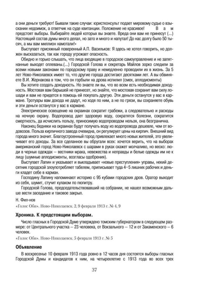 | Сведения о публикации | Голос Оби. Ново-Николаевск. 8 февраля 1913 г № 8. (1) |