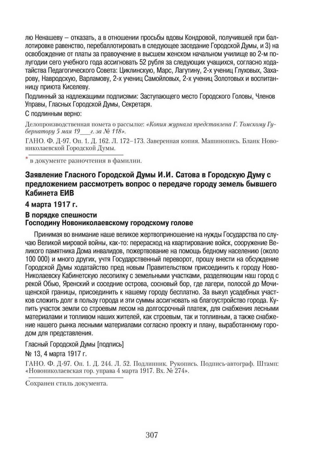 10 лет на службе городу. Новониколаевская Городская Дума в документах и материалах. 1909–1919. — Новосибирск: Некоммерч. партнёрство «Центр архивных технологий», 2008.