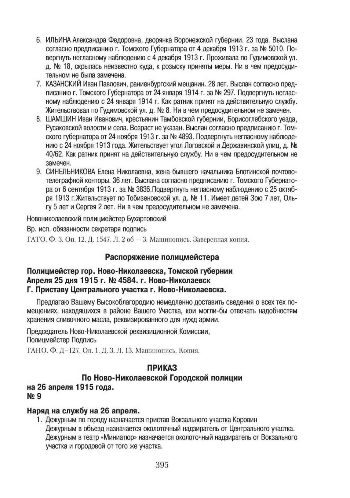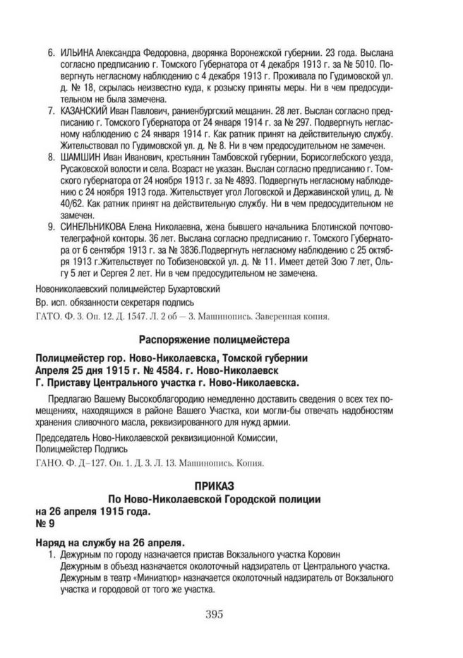 Приказ по Ново-Николаевской Городской полиции на 26 апреля 1915 года // ГАНО. Ф. Д -127. Оп. 1. Д. 2. Л. 1. Машинопись. Копия.