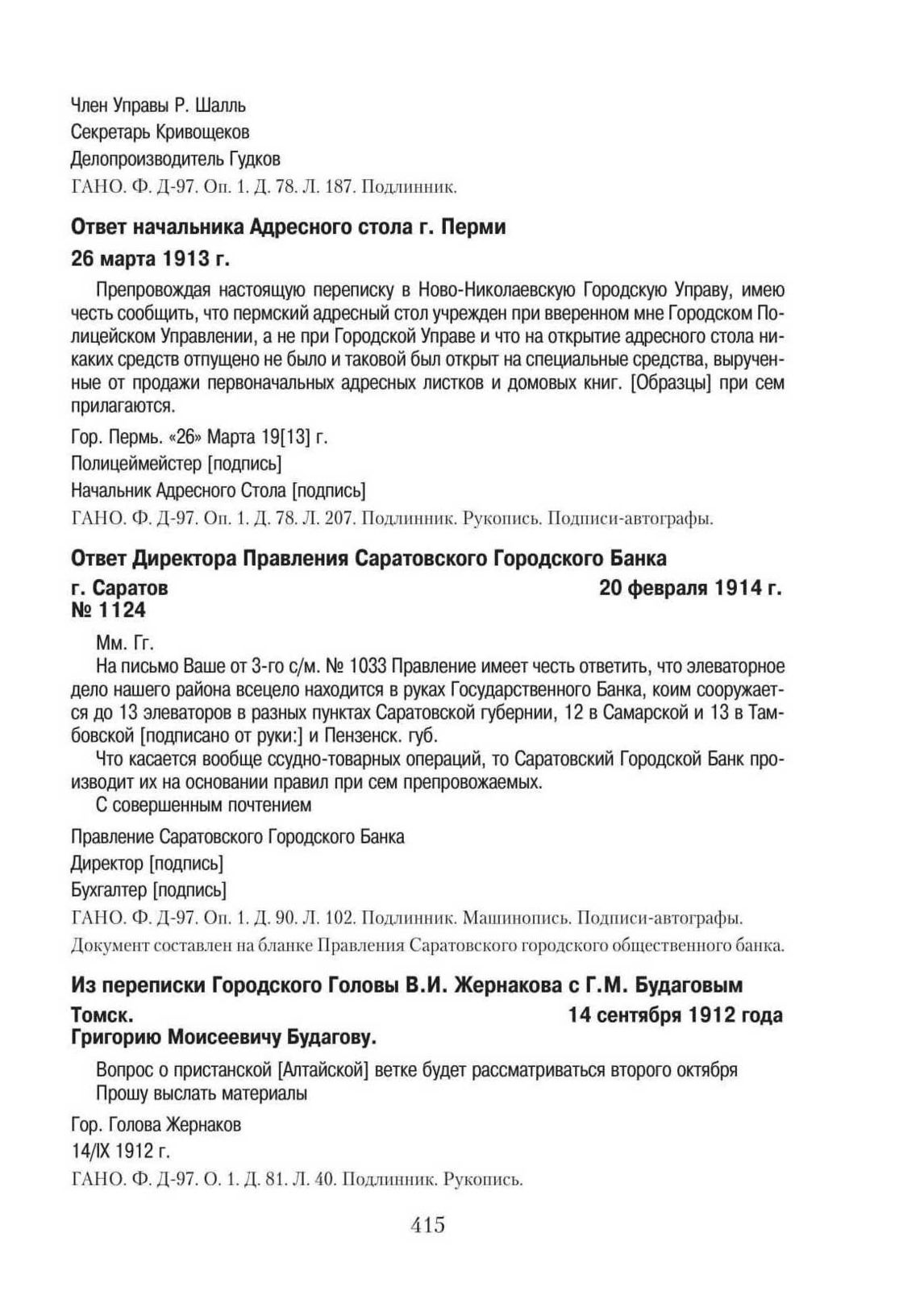 Из переписки Городского Головы В.И. Жернакова с Г.М. Будаговым. Томск. 14 сентября 1912 года