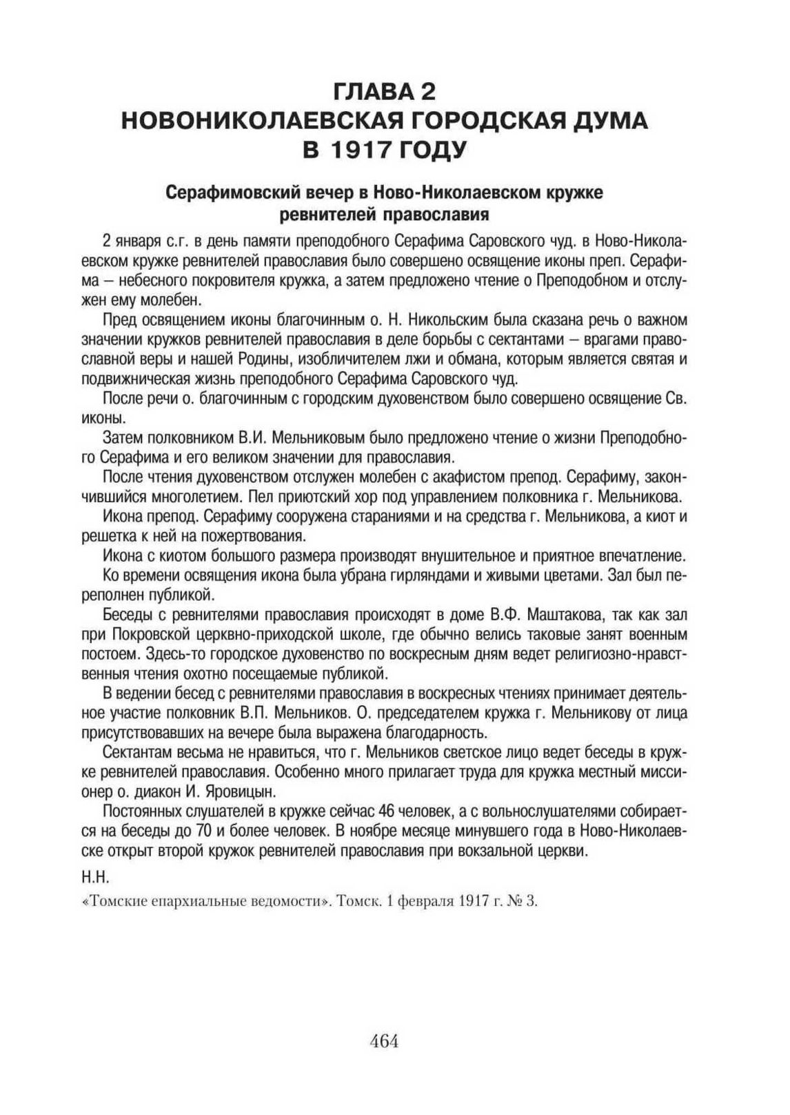 Серафимовский вечер в Ново-Николаевском кружке ревнителей православия // «Томские епархиальные ведомости». Томск. 1 февраля 1917 г. № 3.