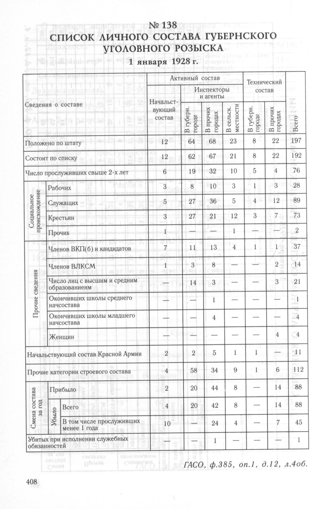 Список личного состава Губернского уголовного розыска. 1 января 1928 г. // ГАСО, ф. 385, оп. 1, д. 12, л. 4 об.